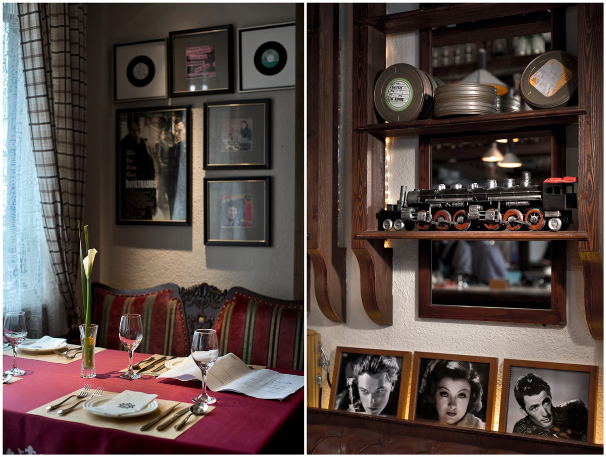 空间充分重视陈设的主表情作用,如海报、胶片、老式电影机、影人肖像、唱片、“那个年代”的自行车等等,有应用要素的呈现,更有平面设计的巧思,营造出属于好莱坞、属于新浪潮、属于爵士乐的视觉印象,隽永而温情绵绵,在记忆的共鸣中随消费完成一次心灵之旅。