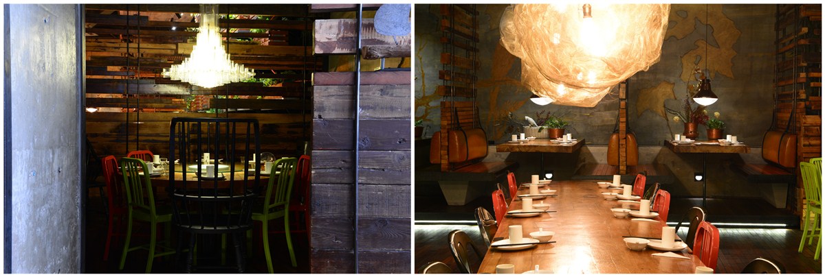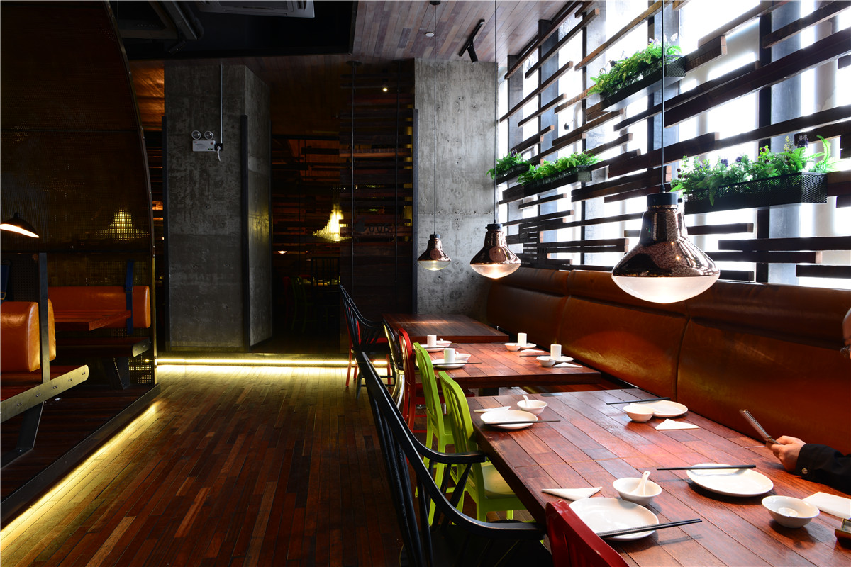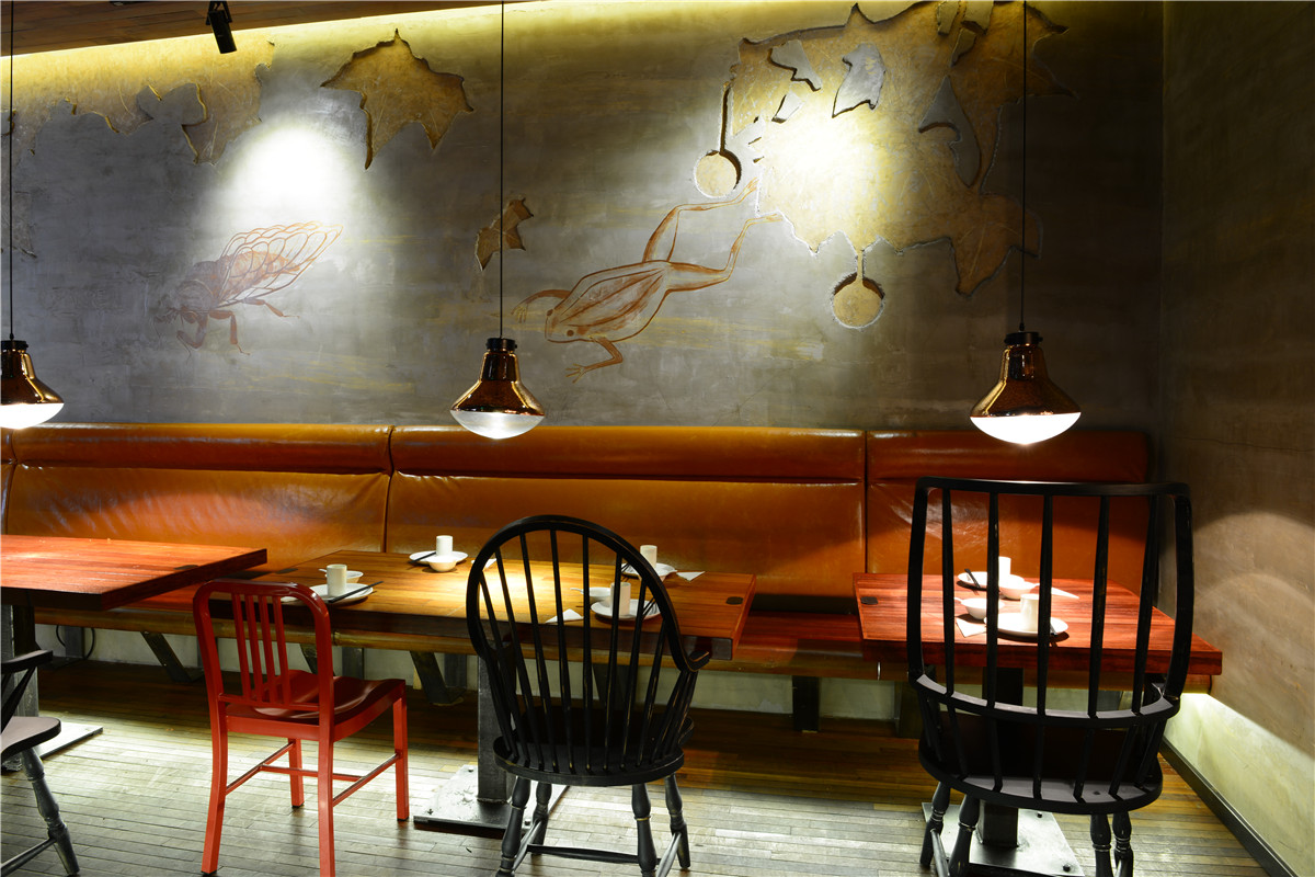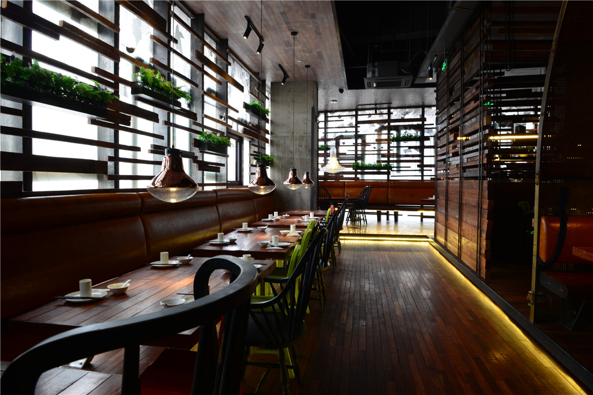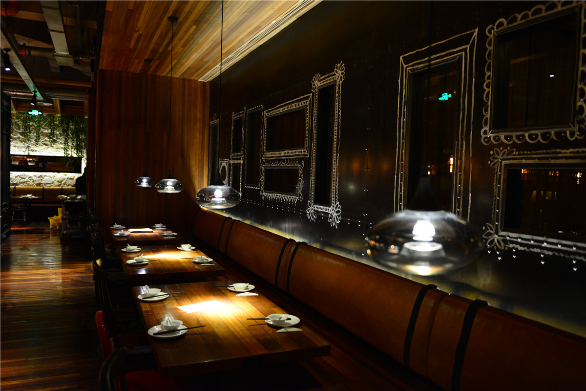 钢板与老木板以背景角色被大面积使用,斑驳古旧与粗粝的质感与视觉,犹如胶片里的岁月和难忘的过往;陈设与艺术品与空间基调异曲同工,朴拙而富余蓬勃的内在张力;细腻微妙的部分体现在空间布局的处理,用虚实相间、轻重配伍的手法,落实到“船蓬”到“帘垂”到平行“五线谱”的空间意向,创造出统一中有变化,写实中有写意、浑然中有节奏的业态空间效果。