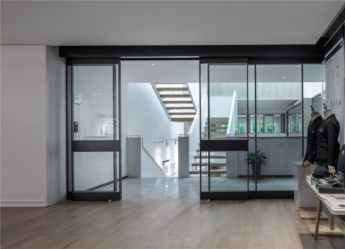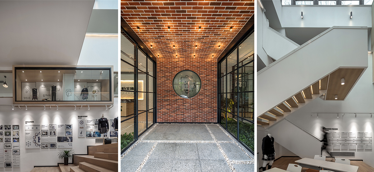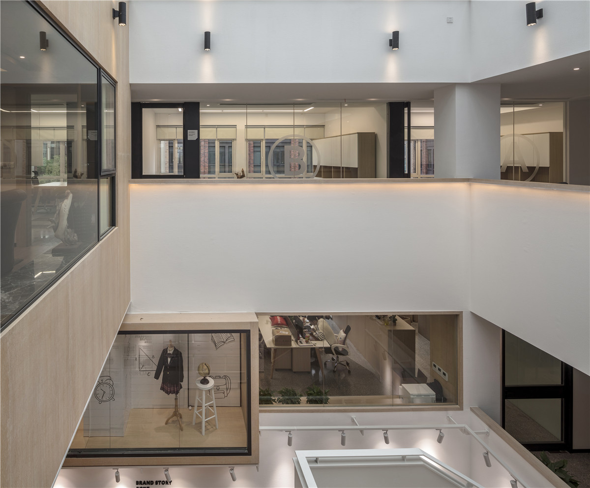 而在利用一些局部空间的部分,如飘出的小空间和楼梯下方空间都设计成了橱窗、模特展示区,更能体现企业文化和形象展示。