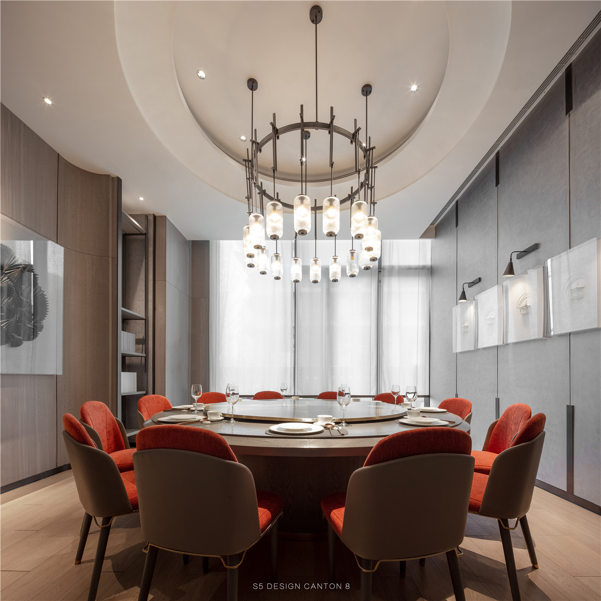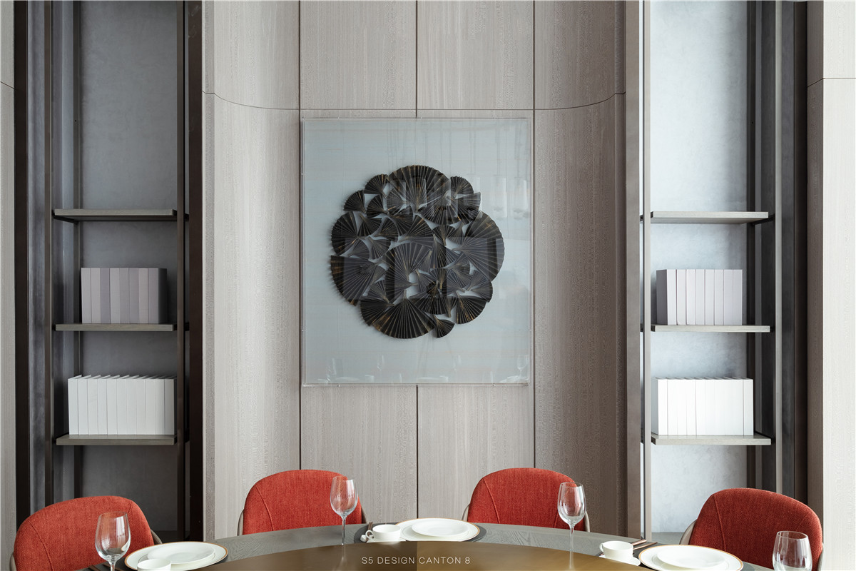餐厅位于苏州市工业园区, 苏州最为旖旎、婉约、柔情, 融江南、文化、传统、精致于一体。 烟雨江南, 一柄久违的油纸伞, 遮住低过屋檐的光阴。 入口欲扬先抑, 以灰白为主调,注入文化的精美。 微微张开屏风,透露出江南有的娟秀, 一抹属于江南清雅的红色,点缀空间, 或围聚在中心,或散落在两侧。 透过屏风,江南的温润若隐若现。 4间优雅的包厢,临街布置, 阳光透过细纱洒入室内, 园林/书画经过了当代的装裱,成为包厢的主要艺术品。 于是在某个得以小憩的时间,撇开杂念, 让江南风味徜徉在唇隙。